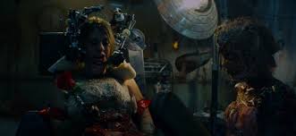 Alright, maybe the script isn't that bad. There's a cohesive plot, a basic narrative, and characters that are stock but solid. Still, this movie has a LOT of writer's privileges. If you watch this film and you're a person that needs your fingers to count, you'll have to take off your shoes to tally up the number of times you'll say, "Well, that wouldn't happen" or "Yeah, right". Just tons of unbelievable stuff going on here; yet, there are enough one-liners (some dubbed after the fact) to keep the viewer from thinking the things happening are too ridiculous. I know it's a horror movie, but there has to be some kind of credibility or the audience stops giving a damn. The Collection comes so close to that but manages to stop just before going to far, the tips of its shoes hanging precariously over the edge. Based on the editing, it looks like the script probably had a lot more in it, but Dunstan (director) decided to cut out a lot that either didn't work, didn't come out well, or did in fact push the flick over the aforementioned cliff. This should hurt the film, but, actually, it doesn't. There are a lot of other things going on that are really fun to watch. The acting is good, with Josh Stewart (Arkin) reprising his punk thief role adequately and Emma Fitzpatrick (Elena) an expressive, beautiful face in a crowd of tough men and ravaged bodies. I have a soft spot for Lee Tergesen, so I think he's great, even though he doesn't really do much here. Melton and Dunstan try to throw in some little jokes and quips, but they don't work as the dialogue is mostly unnecessary throughout the film. What really keeps the film going is the production design, cinematography, and special effects. The rooms in the movie are cast in deep blue, green, or red or the opposite - bright florescent, making things eerie and uncomfortable because of strange colors and lack of vision or so visible that there's nowhere to hid, both instances keeping tension stapled to the viewer. Marry this with some bizarre production design ideas like fly zappers, jars of bugs or miscellaneous body parts, plus general carnage, and you've got a sadistically effective couple. The final touch though, the priest making this unholy union complete, is the special effects. Gary Tunnicliffe is responsible for the body parts and gore gore gore in The Collection, and he outdoes himself. There's SO much to look at, from scattered limbs to eviscerated corpses to simple bone breaks to arterial spray. It's all done really well and shows Tunnicliffe is at the top of his game. He's done make-up for a crap load of movies - a couple of Hellraiser's, Mission Impossible II, Feast, Scary Movie 5, so his range is unprecedented. He doesn't seem to be slowing down, either, as he just finished the effects for Fincher's new one, Gone Girl. So, some impressive stuff from him and a big highlight for The Collection. I can't wait to see what his next horror movie stuff looks like.